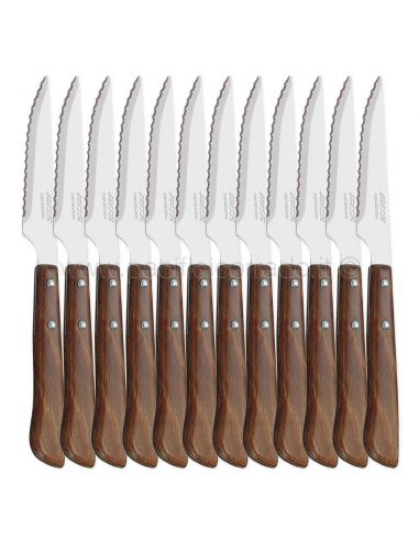 Coltello da tavola da bistecca con lama seghettata in acciaio inossidabile cm 10,5, manico in nylon simil legno, coltello dal design elegante